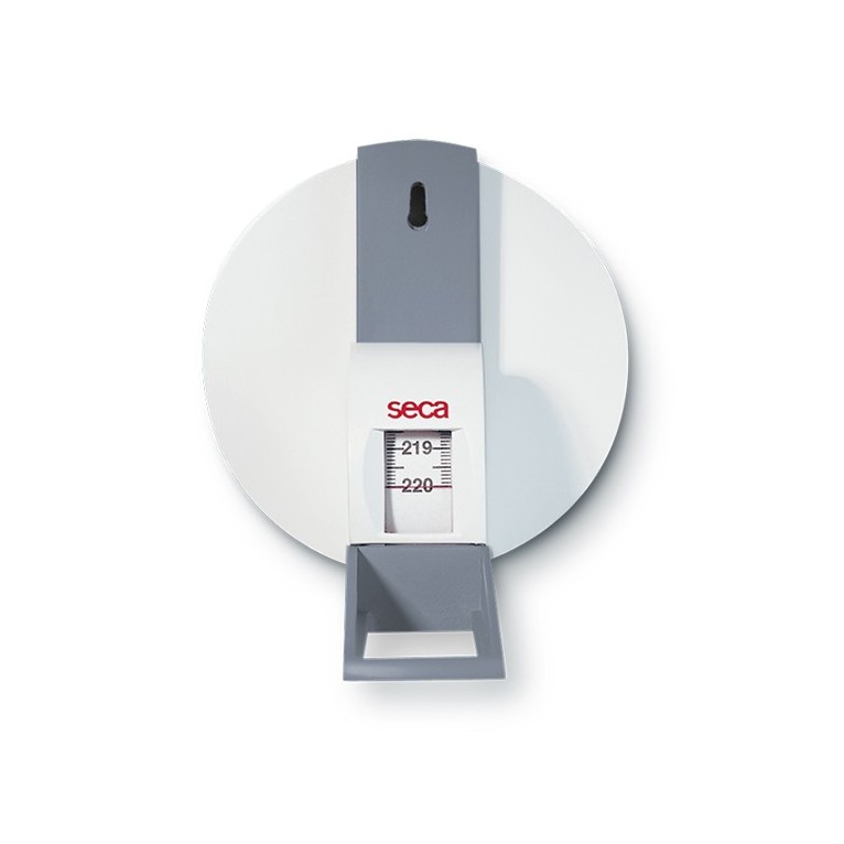 La toise à ruban Seca 206 est un mètre ruban mécanique pour prendre la mesure de la taille. Elle se fixe facilement au mur à l'aide d'une vis et dispose d'un enrouleur qui la rend peu encombrante. La lecture de la mesure est facile grâce à la fenêtre située au dessus de l'appui-tête. Le mètre est en métal pour une meilleure durée de vie du produit.