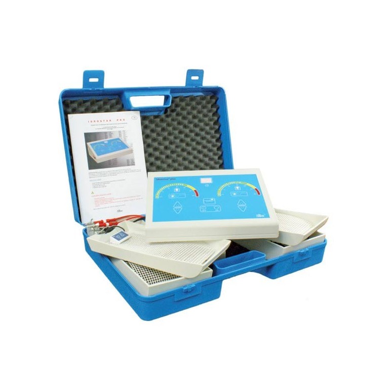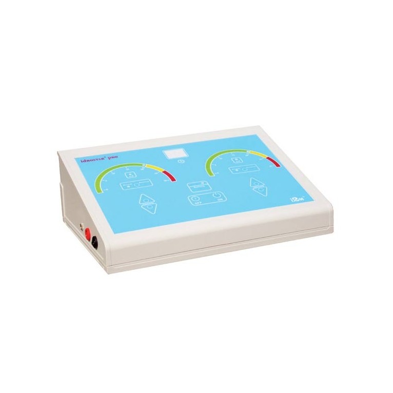 Appareil de ionophorèse à courant direct ou pulsé. Permet le traitement de la transpiration des mains et des pieds en simultanés (aisselles en option). Fabrication française.