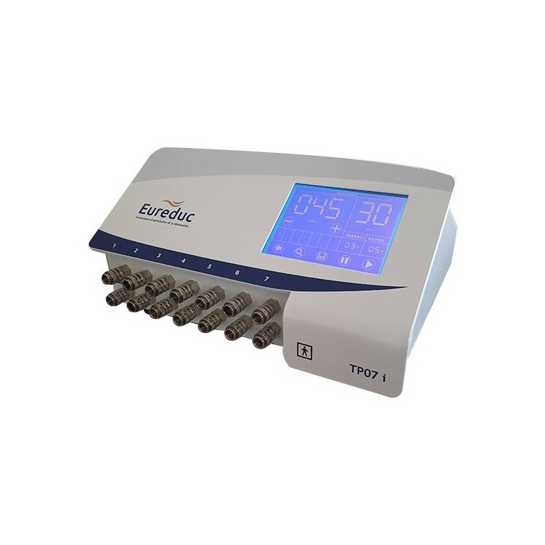Eureduc est le spécialiste français des appareils de pressothérapie. Le modèle TP07i est un appareil professionnel, équipé d'un écran tactile et doté de 9 programmes pré-enregistrés. Il est compatible avec des accessoires 7 cellules et dispose du double gradient de pression automatique assurant un retour veineux optimal (la cellule précédente sur-gonfle au gonflage de la cellule pour réactiver un flux veineux sain).