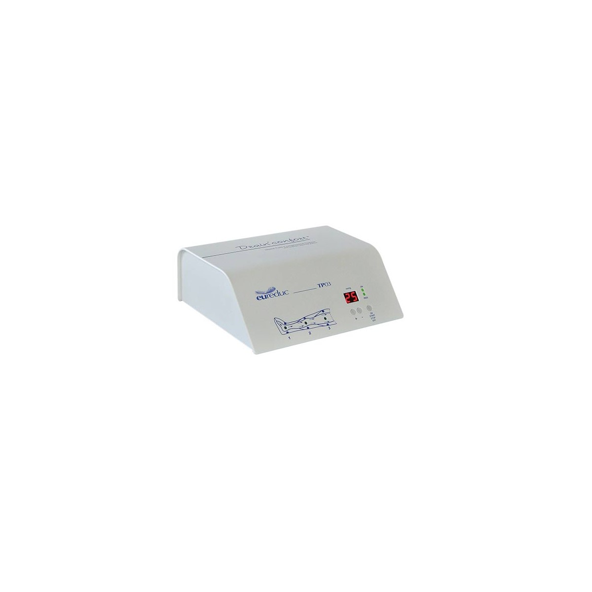 L'appareil de pressothérapie TP03 est un appareil made in France conçu pour favoriser le drainage lymphatique. Il procure un massage des jambes ou du bras par le gonflage des bottes ou de la manchette. Cet appareil domestique améliore la circulation sanguine. Son utilisation est préconisée pour les personnes adoptant la station debout prolongée, souffrant de jambes lourdes et gonflées, ou souhaitant affiner la silhouette.