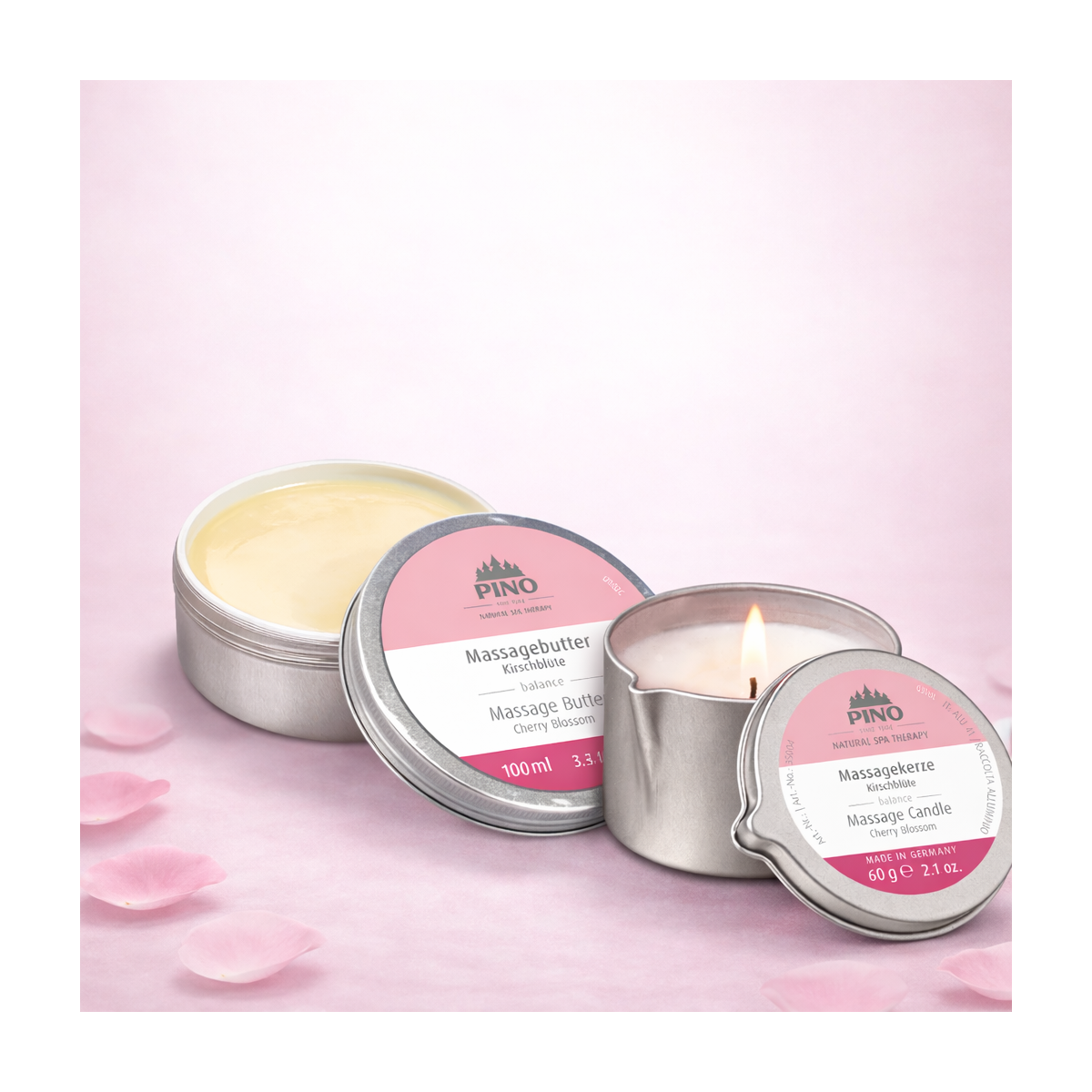 Le beurre de massage PINO Fleur de Cerisier, 100 % naturel, complète parfaitement ce rituel. Sa texture riche et fondante, à base de beurre de cacao, beurre de karité, huile de jojoba et vitamine E, nourrit intensément la peau et lui redonne souplesse et confort. Son parfum floral et apaisant favorise la détente et le lâcher-prise, tout en assurant une excellente glisse pour le massage.