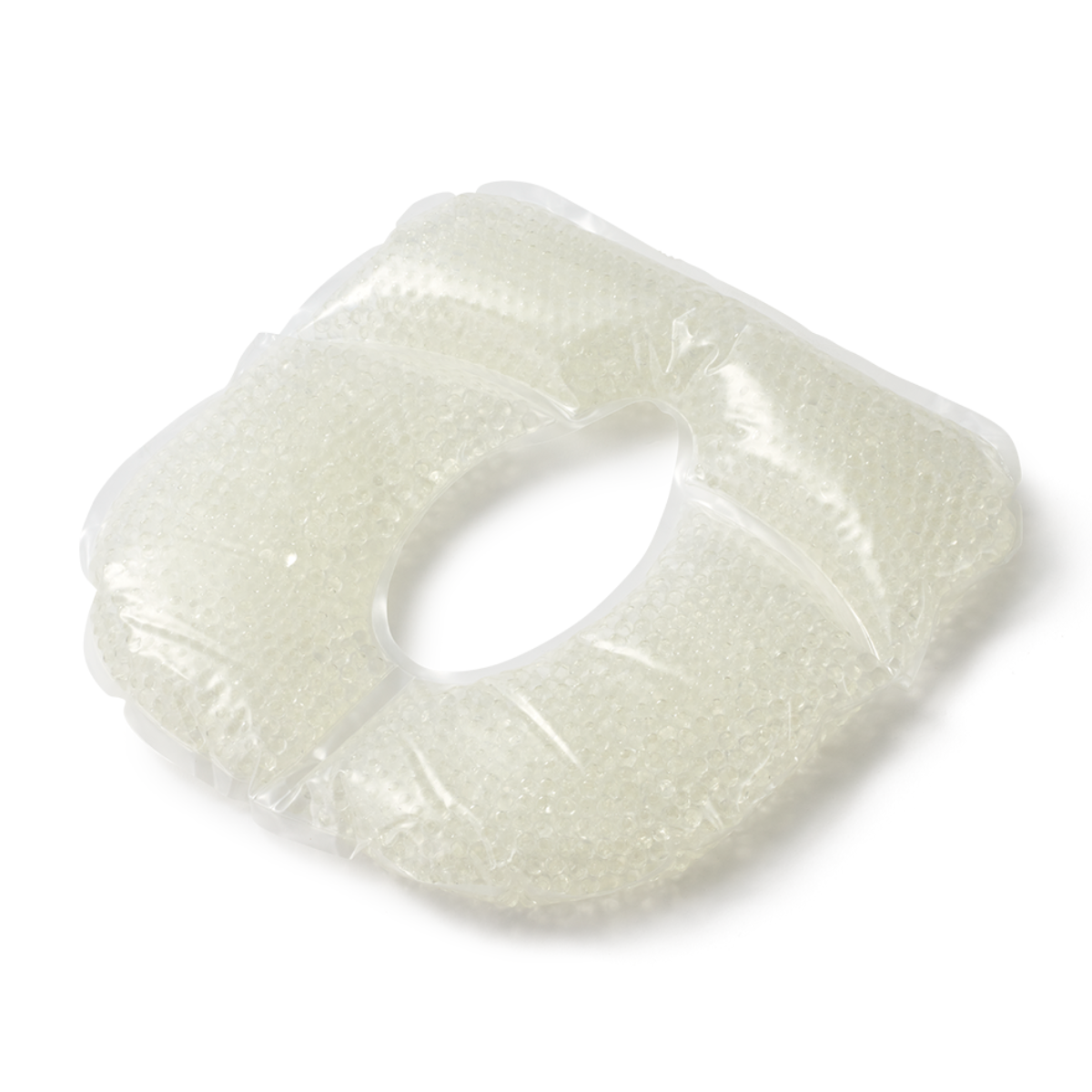 Coussin visage en gel garni de perles pour le confort du patient durant le massage en position ventrale.