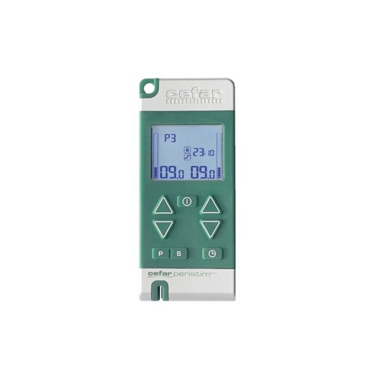 Le Cefar Peristim Pro est un électrostimulateur pour le traitement de l'incontinence, qui permet de traiter le patient avec une sonde vaginale et/ou une sonde anale, ou avec des électrodes de surface pour la rééducation à domicile ou en cabinet. Le Cefar Peristim Pro contient 9 programmes prédéfinis qui prennent en charge tous les traitements de rééducation périnéale dans le cadre d'incontinence d'effort, d'instabilité vésicale ou d'incontinence mixte.