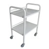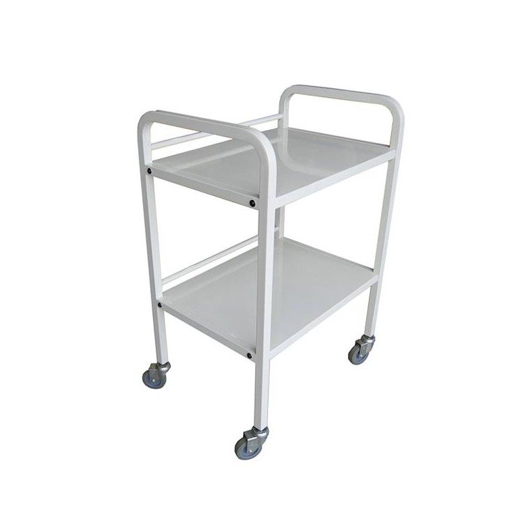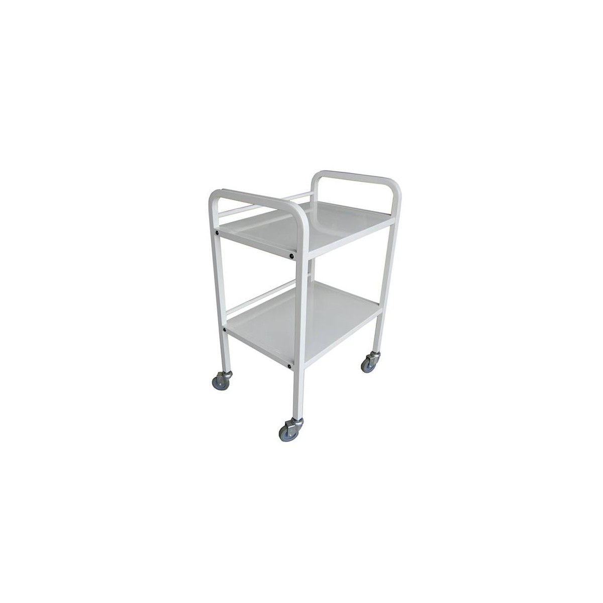 Guéridon en acier 2 plateaux avec roulettes. Idéal pour les hôpitaux, cliniques et cabinet médicaux.