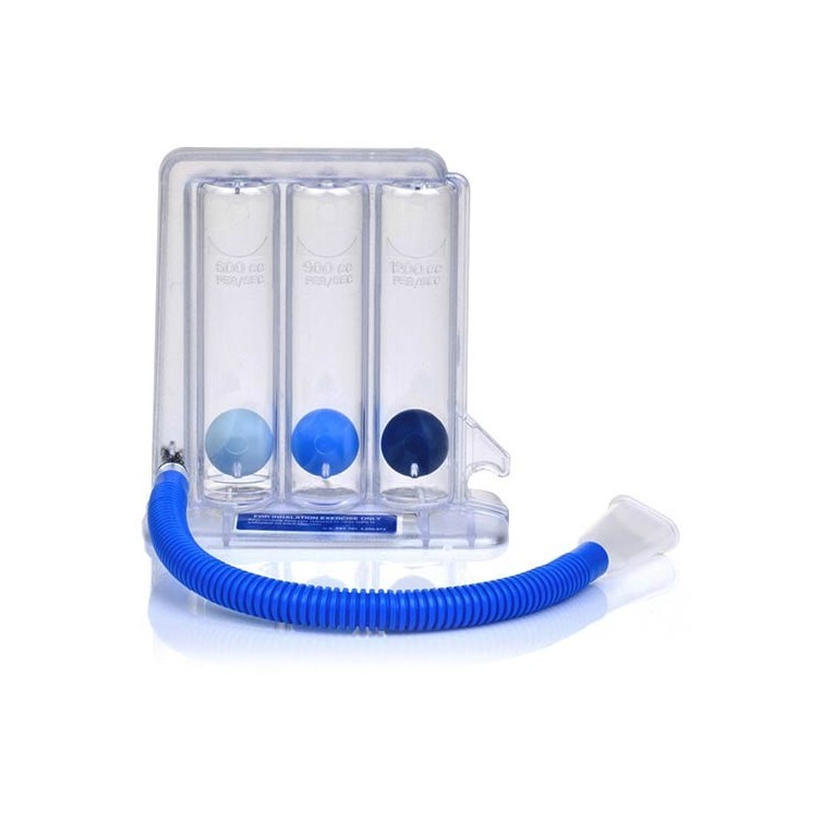 Découvrez l'incontournable appareil de rééducation respiratoire, le spiromètre Triflo II. Il affiche les performances respiratoires de l'utilisateur grâce aux 3 billes et aux repères sur l'appareil. Le Triflo II permet de travailler l'inspiration maximale et l'expiration en fonction des exercices que le praticien ou le kinésithérapeute aura conseillés. Le Triflo II peut être utilisé à l'envers pour des manœuvres respiratoires. Usage à patient unique.