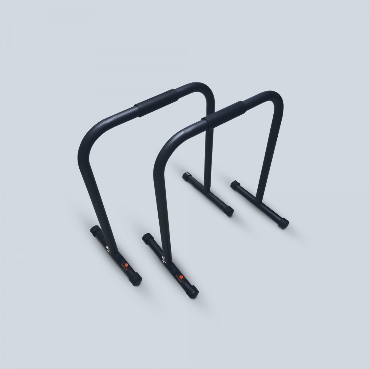 Barres parallèles noires 72 cm en acier robuste, vendues par paire. Idéales pour dips, L-sits, pompes et renforcement fonctionnel au poids de corps.